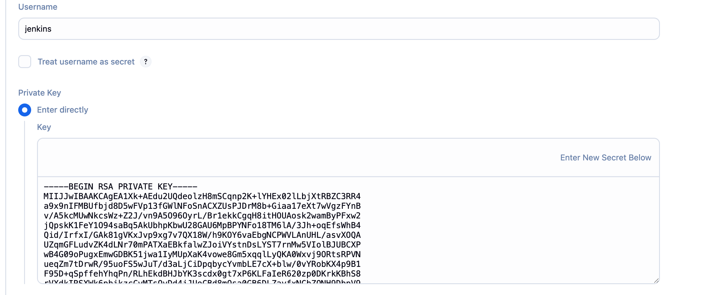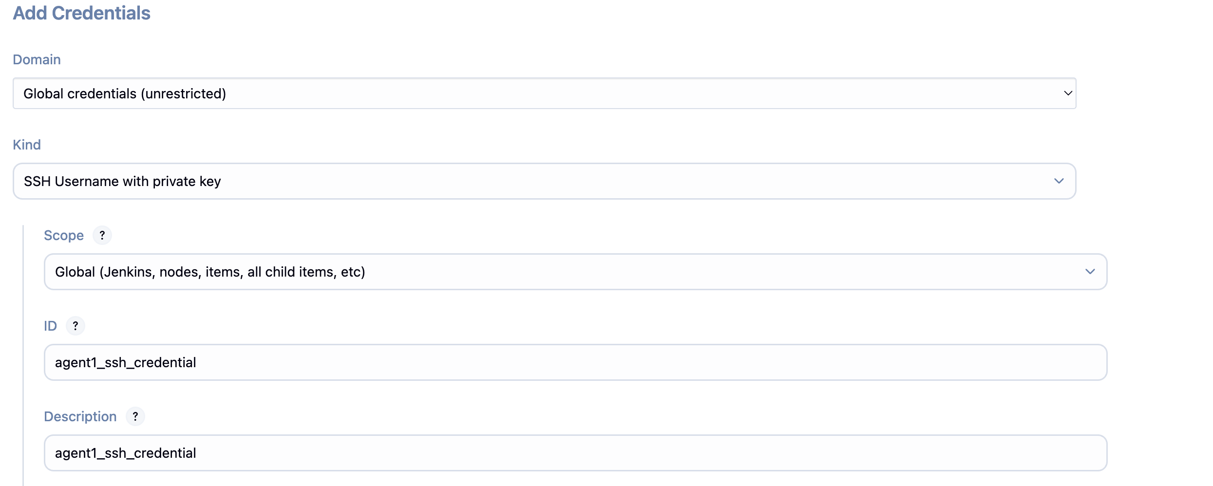 Agent에 접근할 때 사용할 username과 SSH private key를 입력해준다.