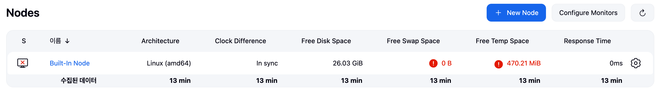 또한 Swap Disk에 대해서도 경고등이 떠있다.