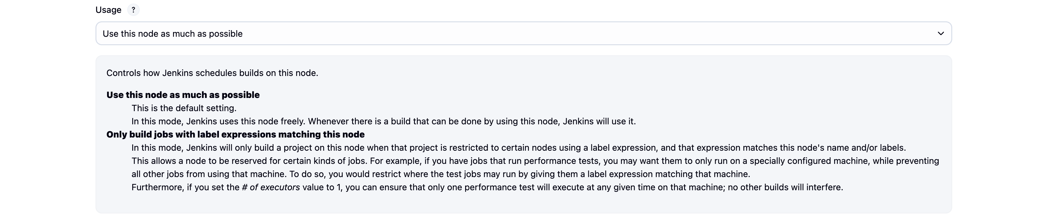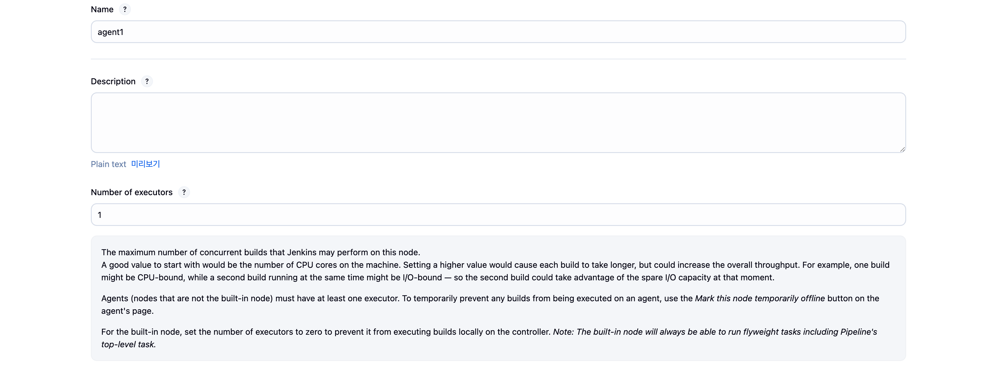 도움말을 읽어보면 Executor는 Agent Node에서 동시에 실행 가능한 빌드 수를 의미한다.